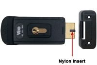 - Rotating dead-bolt: solid brass, with nylon insert which makes the locking more silent.